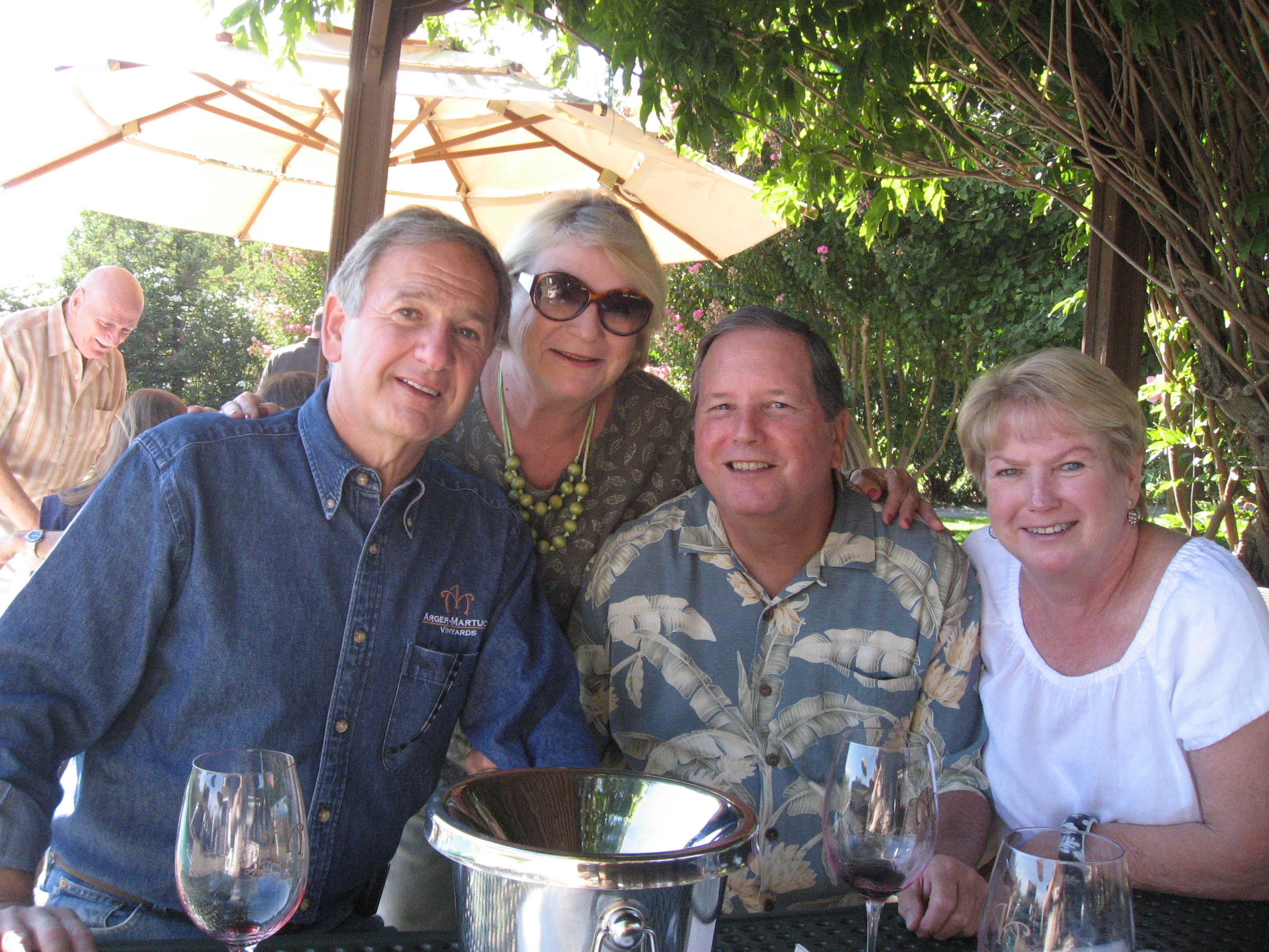 Today proved once again that in a former life I was a vintner, or at least a field worker. I can’t adequately describe why visiting wine country makes me so happy. It’s not just the wine tasting, it’s the whole wine experience, notably the ability to meet and talk with people like Kosta Arger, one half of the Arger-Martucci Vineyard duo that produces some of the best Pinot and Syrah in Napa. We spent nearly four hours at their small production winery (under 4,000 barrels), had a few appetizers and lots and lots of wine. Kosta (who is a cardiologist by day) is the gentleman at left.